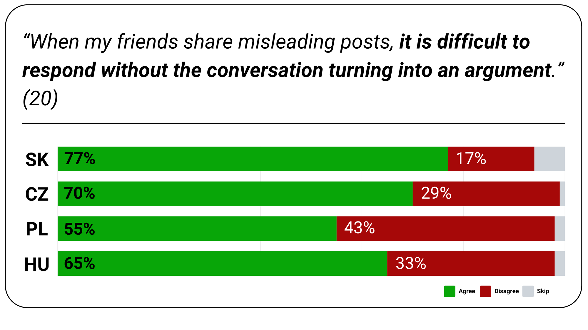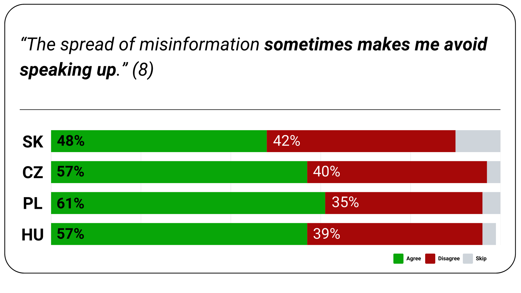 Across the V4, false information is seen as a major issue, but the main differences are within countries, not between them. In every country, young people are divided in how powerless they feel in the face of misinformation. Some feel they can still influence what happens, while others struggle to see how they can make a difference. But it is a positive sign that in every country there are young people who do not feel powerless.